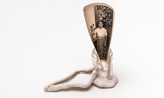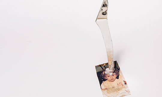 Esta fotografía, titulada PUNZANTE# RECONFIGURACIÓN{ ÁLBUM FAMILIAR es un autorretrato que surge de un álbum familiar. Desde la idea de fotografía, memoria, objeto y símbolo ejerzo un juego, repensando imaginarios que subyacen de la fotografía. En 2019, destruí todo objeto físico y simbólico de mi habitación. Entre esas cosas estaba este álbum con el que trabajo y reimagino ensamblando, doblando y reconstruyendo junto a otros objetos rotos de mi propia habitación, creando monstruos con prótesis que contienen pequeños elementos con simbolismo. Punzante es un autorretrato, una fotografía propia.