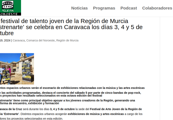 Onda Cero – Estrenarte se celebra en Caravaca los días 3, 4 y 5 de octubre